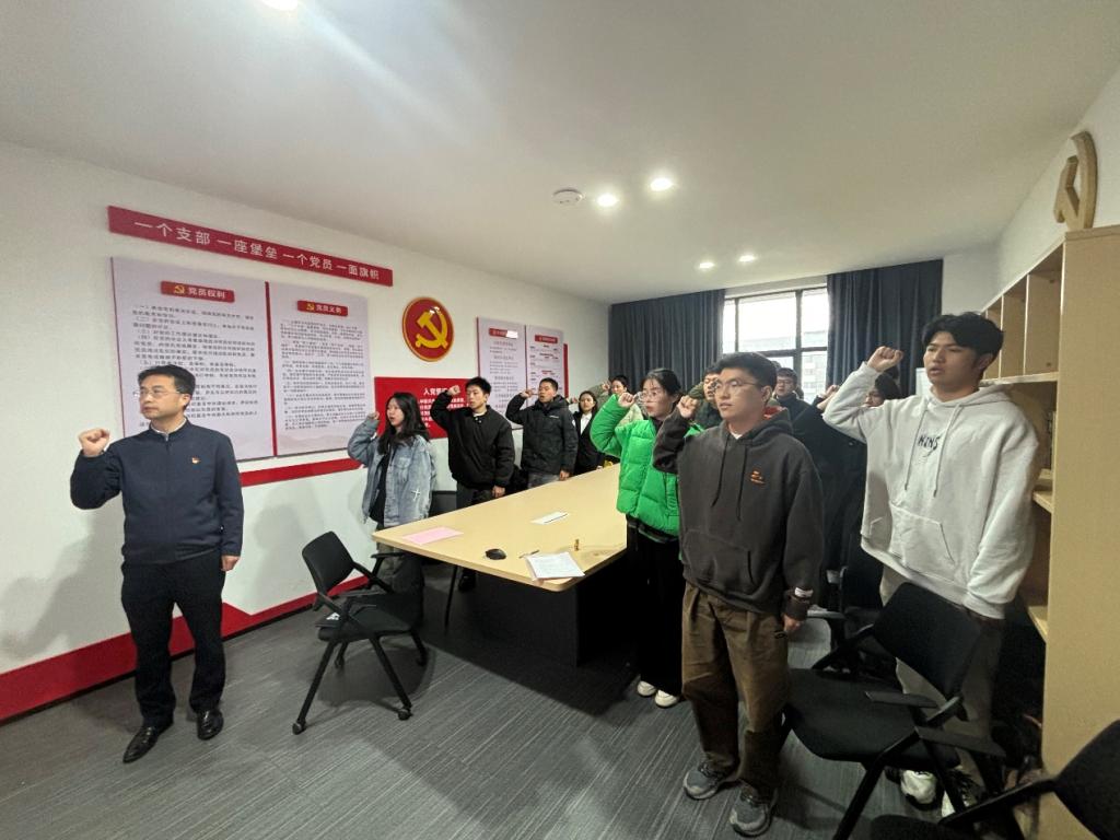 随后,高东波带领全体预备党员宣誓。19名新党员举起右手,面向党旗庄严宣誓,入党誓言,字字铿锵,表达对党的坚定信念和为党的事业奋斗终身的决心。