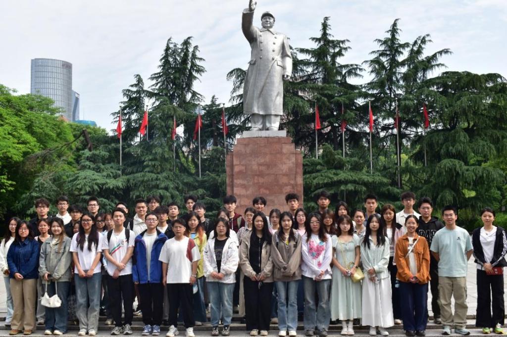 当日上午9时,培训班学员准时抵达长沙历史馆。阳光洒在庄严肃穆的毛泽东塑像上,学员们满怀崇敬之情,在毛泽东伟人像前整齐列队,拍照留影,开启了本次红色之旅。