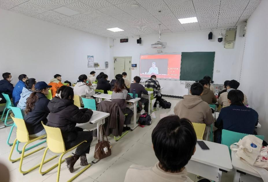 党总支组织全体师生党员分4个会场开展师生党员基本培训第三课,集中学习观看了由教育部党组书记、部长怀进鹏主讲的题为“深入学习贯彻习近平总书记关于教育的重要论述,以教育强国支撑引领中国式现代化”的专题党课。