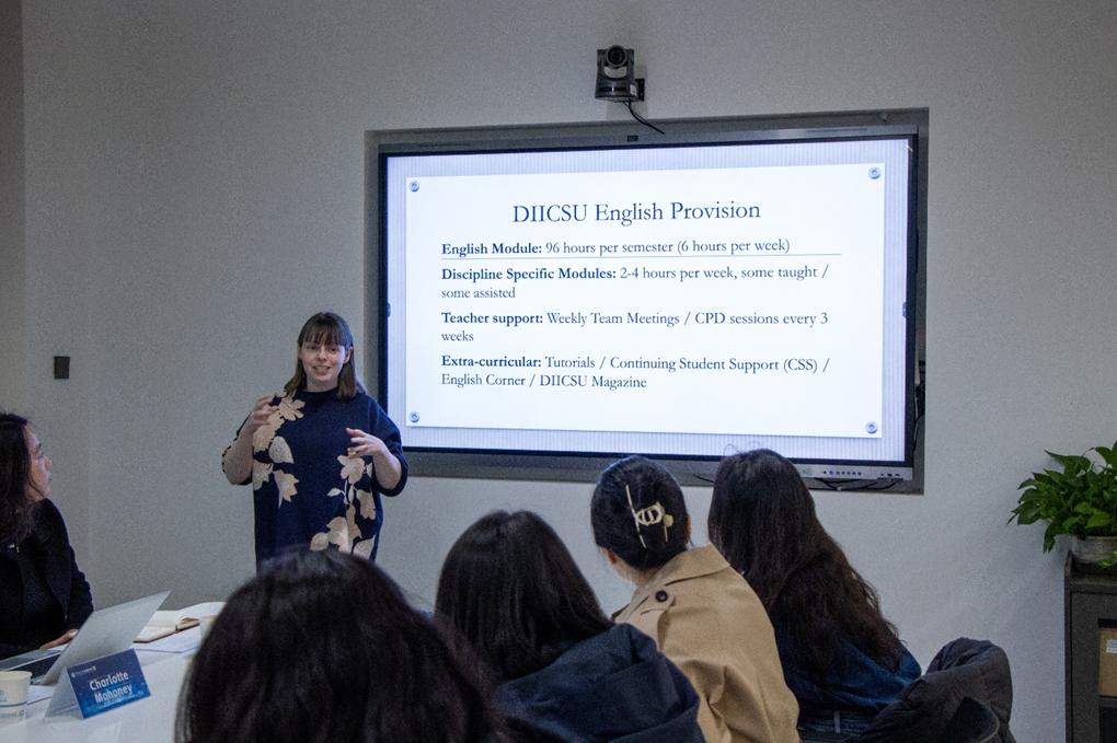 英语教研组长Charlotte Mahoney介绍了学院英语教学的特色亮点。会后,东北大学调研团还现场观摩了英语教学课堂,对外方选派教师的授课方法、课堂氛围等情况表示高度认可。双方在交流互鉴中碰撞出思想火花,为进一步推进中外合作办学提供了新思路、新方法。