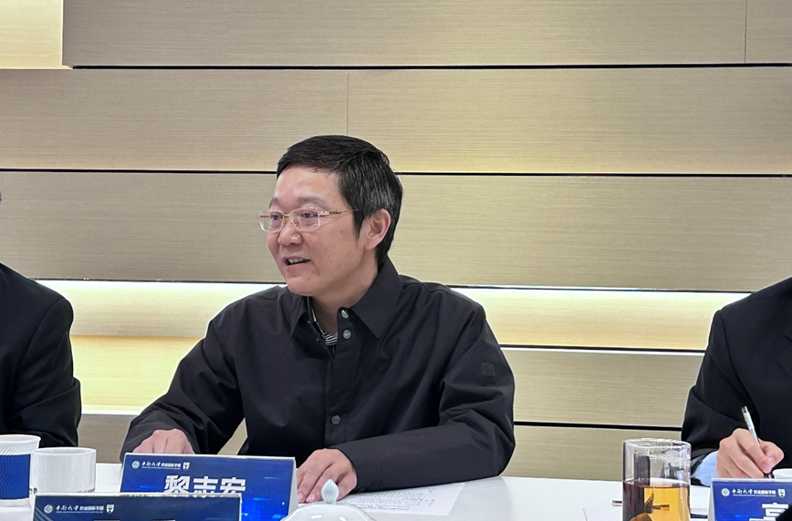 黎志宏副校长代表学校对新任5位兼职副院长表示祝贺和欢迎,他指出中外合作办学是学校“四个转型”战略尤其是“向国际化办学转型”的具体实践,希望大家重视和支持学院建设,提高认识、注重质量、共同进步、做出品牌。他强调,在办学建设过程中,各位兼职副院长要加强意识形态和思政教育工作,注重外交纪律与礼仪,平衡好专业学院与韩漫基地