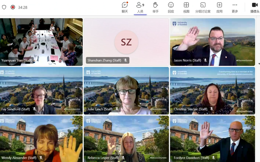 副校长黎志宏和副主任、邓迪大学校长Iain Gillespie共同主持。JMC委员Wendy Alexander、Fordyce Davidson、Jason Norris、Karen Petrie、Rebecca Leiper、李家才、殷刚、高东波、高广军、易亮出席了会议,本科生院赵军受何旭辉委员委托参加会议,Judy Finlay、Christine Sinclair、Fay Sandford、Julie Lynch以及学院相关人员列席会议。