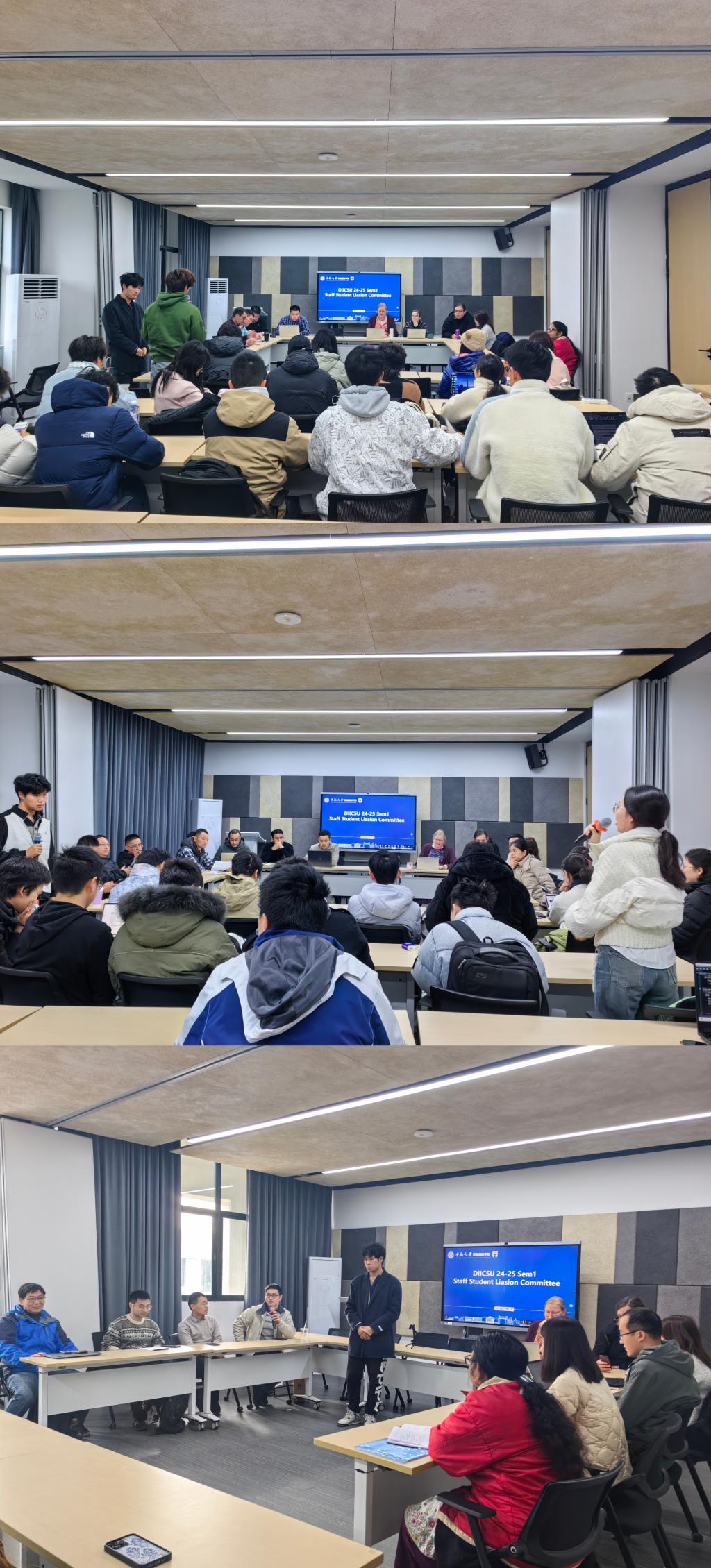 2024-25学年第一学期师生联席会在六楼研讨室顺利召开。本次会议按年级、分三场举行,共有37名教师和44名学生代表参加。会议由邓迪大学科学与工学院学生会副主席计算机D2401班何卓远同学主持。