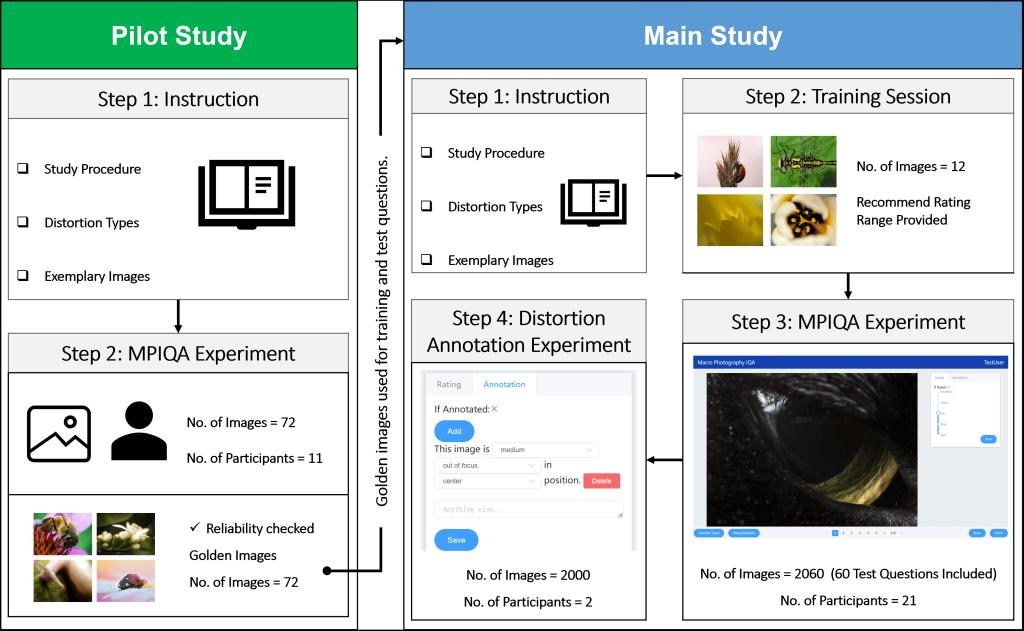 该论文聚焦于微距摄影图像质量评估(Macro Photography Image Quality Assessment, MPIQA)这一前沿问题,微距摄影在科学研究、医学成像等领域具有广泛应用,对图像细节要求极高。然而,长期以来相关领域缺乏高质量、系统化的标注数据,制约了针对微距图像的质量评估方法的发展。为此,研究团队构建了MMP-2K数据库——目前规模最大、标注最全面的MPIQA公开数据集之一。具体而言,团队从15,700张公开微距图像中筛选出2,000张具有代表性的图像样本,并在实验室环境下组织多名受试者进行图像质量主观评估。每张图像均获得了可靠的打分,同时还提供了详细的质量标注信息,包括图像中扭曲的类型、程度和空间位置,构建出独具特色的多标签数据结构。实验结果表明,现有主流的无参考图像质量评估模型在微距图像上表现显著下降,显示该领域对更具针对性的模型存在迫切需求。MMP-2K数据库的发布,不仅为后续算法研究提供了坚实的数据基础,也对现有图像质量评估体系提出了重要补充。