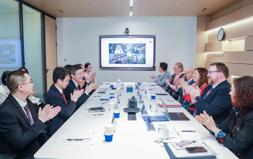 王晓宗受易亮委员委托参加会议,邓迪大学中国区主任Judy Finlay、全球伙伴经理Fay Sandford以及韩漫基地