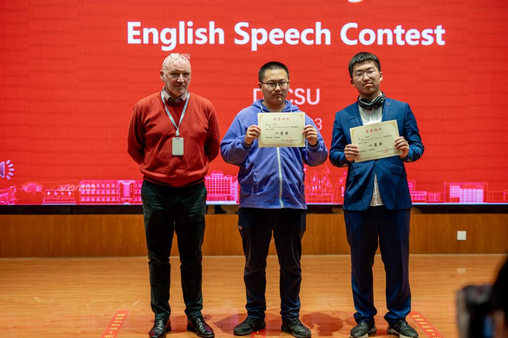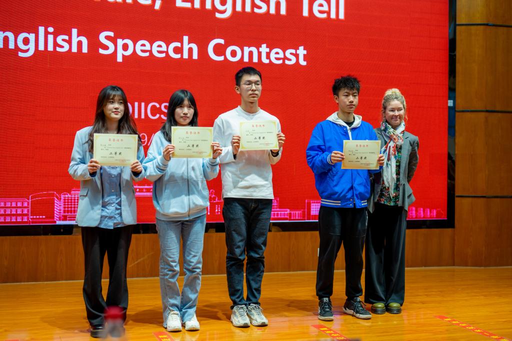 本次比赛邀请到外方教师Napoleon Mannering、Paul Kimm、Zoe Robson担任评委,着重考核了参赛者的语言表达、主题内容、思辨能力、演讲结构、演讲技巧和时间控制。经过激烈角逐,最终交设D2201班傅嘉乐与机械D2201班曾好荣获一等奖,土木D2202班蔡佳霖、计算机D2201班李政宜、应数D2201班陈烨、土木D2202班钟文洁等4名同学荣获二等奖,机械D2202班陈鸣宇、土木D2203班姜雪纯、计算机D2201班苏毅、计算机D2202班李井然、计算机D2201班俞馨、土木D2202班彭佳明等6名同学荣获三等奖。