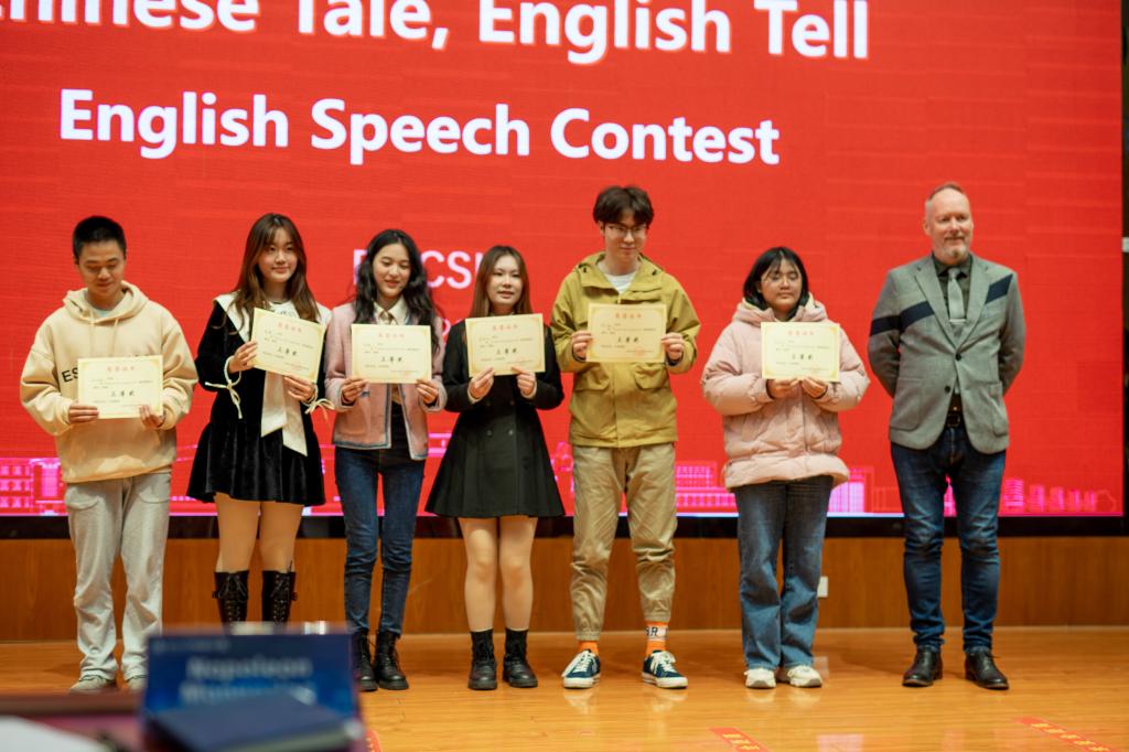 “Chinese Tale, English Tell”英语演讲比赛在新校区外语网络楼一楼报告厅成功举办。本次比赛面向全院学生征集报名参与,最终评出一等奖2名、二等奖4名、三等奖6名、优胜奖13名。
