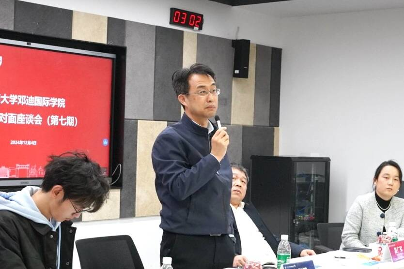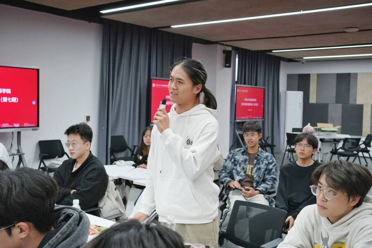 会议第二阶段,各班级代表自由提问,举手发言,向领导们表达同学们的心声,诉说遇到的难题。周淇同学就计算机语言的学习顺序提出建议;唐瑞麟同学反映了授课老师的课业讲授情况并提出改进建议;邓何铭昊同学提出了关于外方老师语言沟通方面的问题。其他同学也分别就课程安排、综合测评评分依据等方面提出问题。各位领导认真听取学生们的提问,逐一用心做出解答,给出反馈。