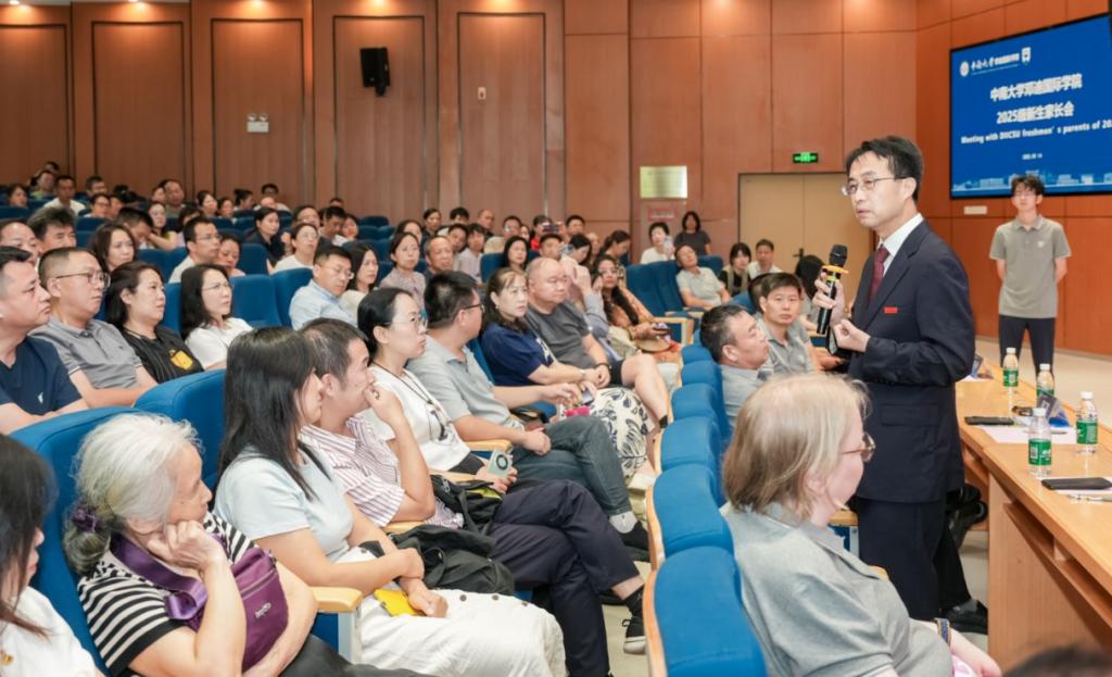 的基本情况,着重强调了学院始终坚守严格的办学质量标准。此外,他还鼓励家长深入了解中外合作办学的教学特色,加强家校沟通协作,共同助力新生快速适应全新教学体系,为学生的学业发展保驾护航
