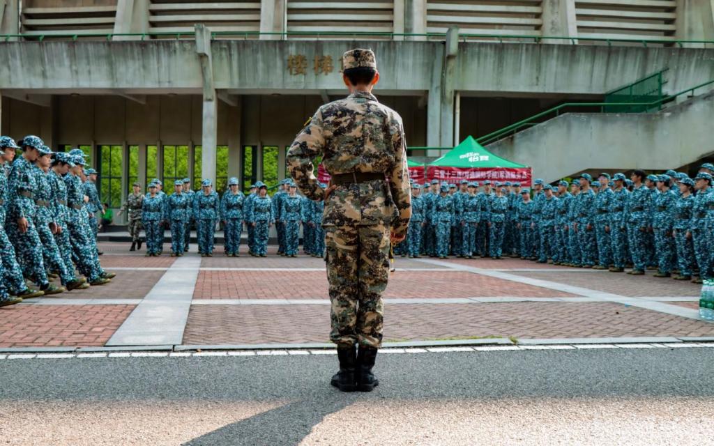 上午7时,全体参训学生已整装集结,投入首日训练之中。训练从站军姿开始,教官们细心指导,强调要领,同学们昂首挺胸,气宇轩昂。随后的基本训练中,从拿放水瓶到队列整理,一切皆有规章,军训的纪律化作教官们的声声指正与鼓励,落到同学们的心里。训练间隙,同学们依次上前进行自我介绍,加深了彼此的印象。各个排还进行了拉歌练习,嘹亮的歌声响彻云霄。