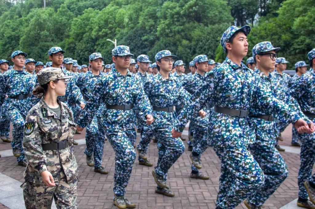 尽管天色灰蒙,同学们的训练热情却丝毫不减。各方阵训练有序展开:匕首操方阵已熟练掌握十一个分解动作,一招一式刚劲有力,一劈一刺气吞山河,仿佛有杀气从身上弥漫开来;分列式方阵精益求精,从摆手高度到步幅距离,乃至正步定腿的稳定性,每个细节都力求完美,争取在最后的会操中呈现出最饱满的精神面貌;仪仗队、军乐团等特殊方阵的同学们则需要面对更为繁多的任务,依然全力以赴。这些点滴细节,无不彰显着邓迪学子对军训的投入与对国防的热忱。