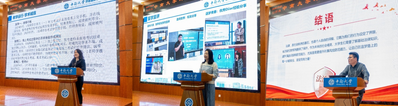 范帆系统讲解了网签系统操作及就业手续办理流程,涵盖生源信息核对、推荐表注册、网上与纸质签约、解约办理等环节,号召同学们积极利用学校就业平台资源,提前为就业做好准备。王晓宗开展大学生法制教育专题讲座,以大学生日常行为违纪案例警示同学们严守法律底线,提升自身风险识别与防范能力,确保大学生活安全平稳收官。
