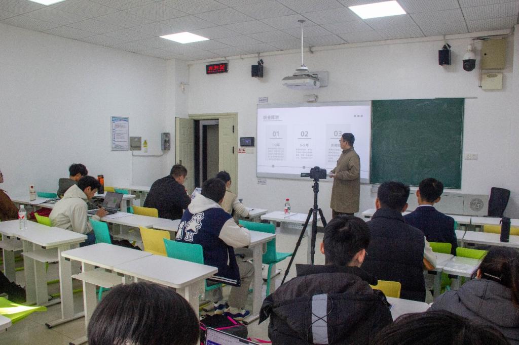 赛场上,就业赛道选手结合求职PPT,清晰阐述个人职业意向与准备情况;成长赛道选手则通过生涯发展报告,系统呈现围绕目标所展开的学习实践与动态调整过程。评委围绕职业目标、实践成果与现场表现等进行提问,并提出针对性建议。