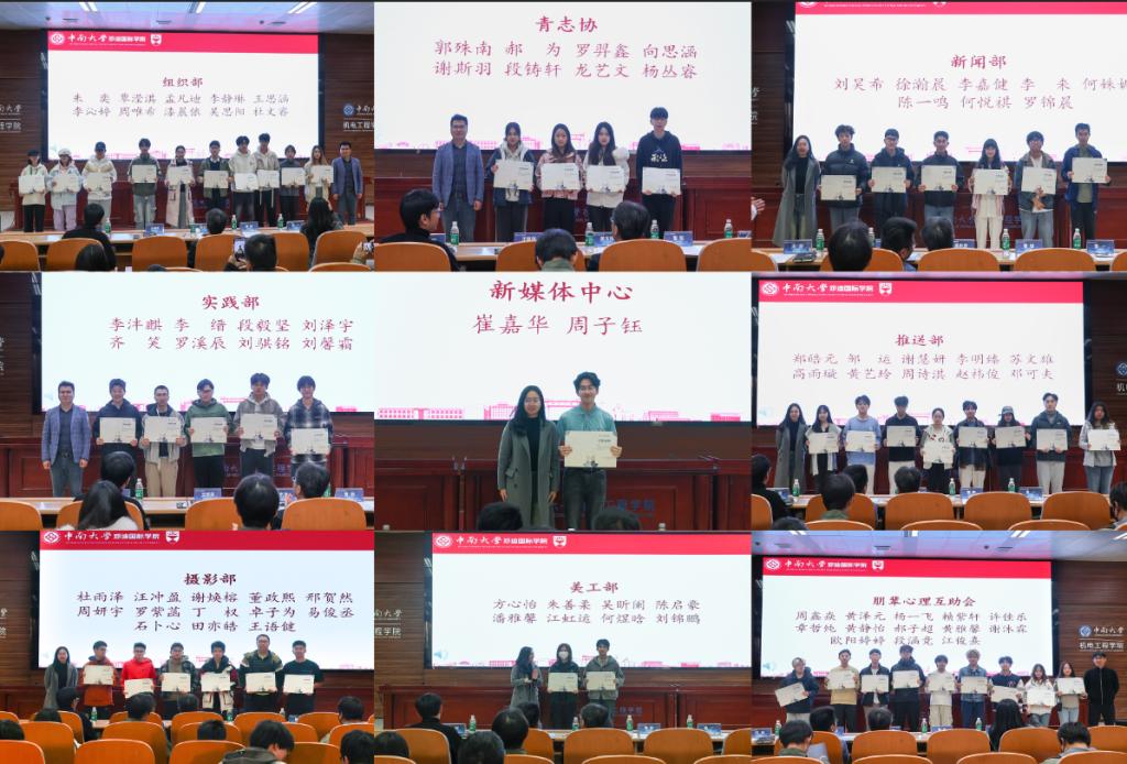 会议第三项议程,高东波书记与各学生组织指导老师为第三届学生工作组织成员颁发任职证书,纪念他们过去一年的努力与贡献,也激励新一届成员接续奋斗、薪火相传。